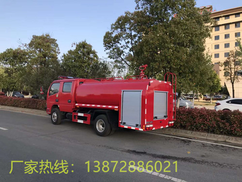 是我厂采用东风原装底盘EQ1070DJ3BDF基础上改装而成,整车结构紧凑;专用部分由液罐、泵室、器材箱、动力输出及传动系统、管路系统、电气系统等组成,广泛适用于城镇公安消防队、石油化工、厂矿企业、森林、港口、码头等部门,可迅速接近火场展开灭火战斗,扑救各种火灾,是理想的消防装备。 整车型号 5072GPSF5 底盘型号 EQ1070DJ3BDF 质量参数 (kg) **总质量(kg) 6775 外形尺寸(mm) 6115×1980×2700 额定装载质量(kg) 2000 罐体容积(mm) 4吨 整车整备质量(kg) 4400 轴 距 (mm) 3308 发动机 参 数 型号 4B2-115C50 排 放 柴油 功率/排量(kw/ml) 85/2545 生产企业 东风朝阳朝柴动力有限公司 性能参数 **车速(km/h) 95 轮距(mm) 前 桥 1530 驾驶室 2+3 后 桥 1494 钢板弹簧 6/6+5 悬长(mm) 前 悬 1040 轮胎数 6 后 悬 1767 轮胎规格 7.OOR16 行驶角(°) 接近角 20 轴数 2 离去角 13 专用功能 水罐容量(L) 装水4L 消防炮 型号:PS20型消防炮,流量20L/S/1MPa 水射程:≥45m 消防泵 1,常压消防泵型号:CB10/20车用消防泵,流量:30L/s,压力:1.0MPa 2,引水时间≤35s(7m吸深)水环引水 夹心式全功率取力器 性能描述 驾驶室为全钢框架焊接结构,乘员室前部与驾驶室连通,双排四开门;材料采用优质碳钢(Q23**),板材厚度4 mm,选装不锈钢罐体,经久耐用;器材厢门采用铝合金帘子门,滚筒、滑槽导向,启闭轻便、噪音小;器材厢两侧及后部翻板式踏板,采用气弹簧、门止限位装置双重固定,安全性能可靠;除原车设备外,驾驶室内加装有取力器控制指示灯、100W警报器、LED警灯、标志灯、示廓灯开关及后部照明灯等;随车器材见附表。