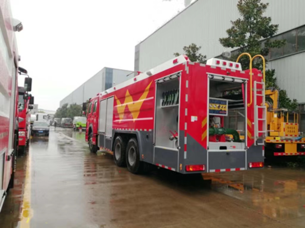 重汽豪沃双排泡沫干粉联用 是我厂采用重汽原装底盘基础上改装而成,整车结构紧凑;专用部分由液罐、泵室、器材箱、动力输出及传动系统、管路系统、电气系统等组成,广泛适用于城镇公安消防队、石油化工、厂矿企业、森林、港口、码头等部门,可迅速接近火场展开灭火战斗,扑救各种火灾,是理想的消防装备。