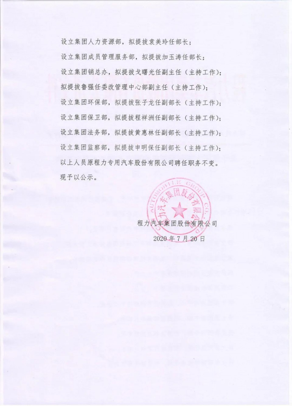 本报讯(通讯员徐春报道):近日,程力汽车集团股份有限公司企业管理大部制改革中高层负责人任命及集体谈话专题会议,在公司总部一号会议室隆重举行。