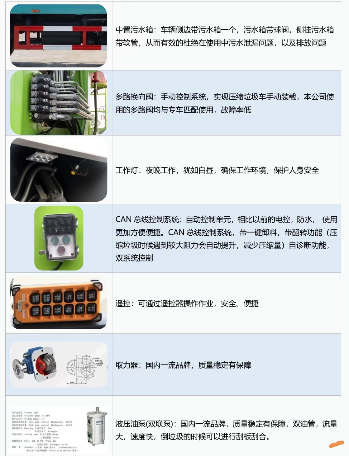 程力14方压缩式垃圾车由密封式垃圾厢、液压系统、操作系统组成。整车为全密封型,自行压缩、自行倾倒、压缩过程中的污水全部进入污水厢,较为彻底的解决了垃圾运输过程中的二次污染的问题,避免了给人们带来不便,关键部件采用进口部件,具有压力大、密封性好、操作方便、安全等优点。