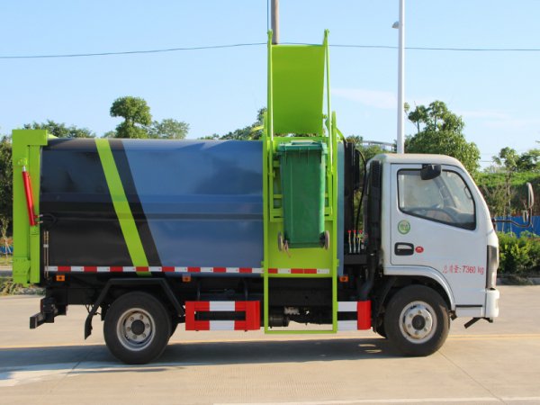 将桶装餐厨泔水垃圾经专用提升架缓缓上提,在车顶部倒入车厢内(车箱可分为箱体和罐体),被投放的垃圾经过强有力的推板挤压,在罐体内实现固液分离,被分离的液体进入罐体底部的污水箱,固体垃圾被压缩储存在罐体,体积变小,如此反复待装满后送**餐厨垃圾资源优化处理厂。