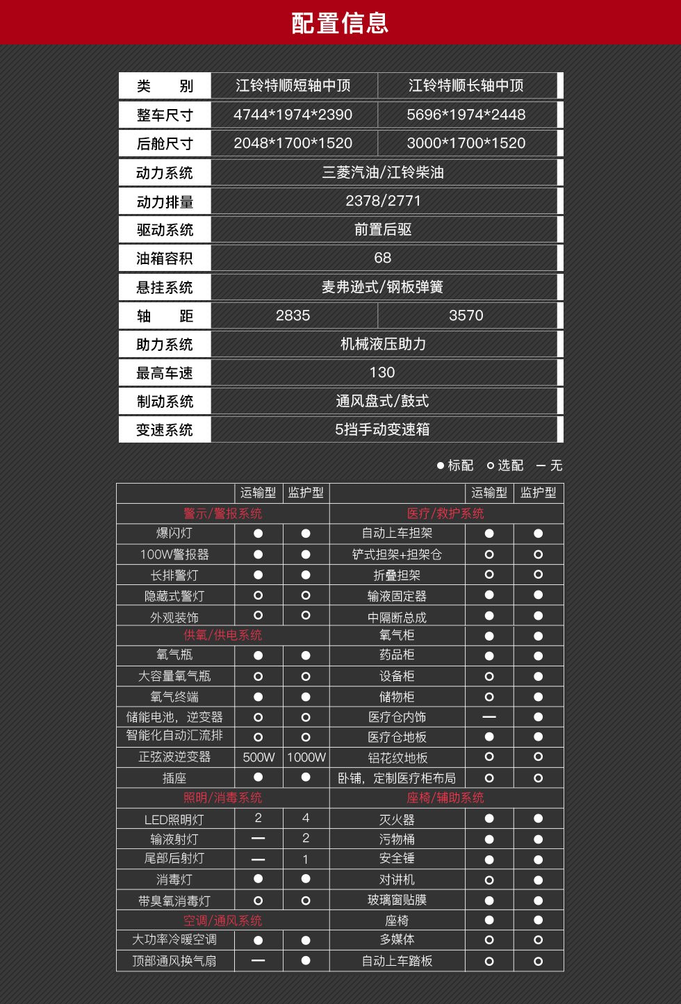 首页 > 产品中心 > 应急保障车系列 > 医疗救护车 >  江铃特顺长轴中顶救护车